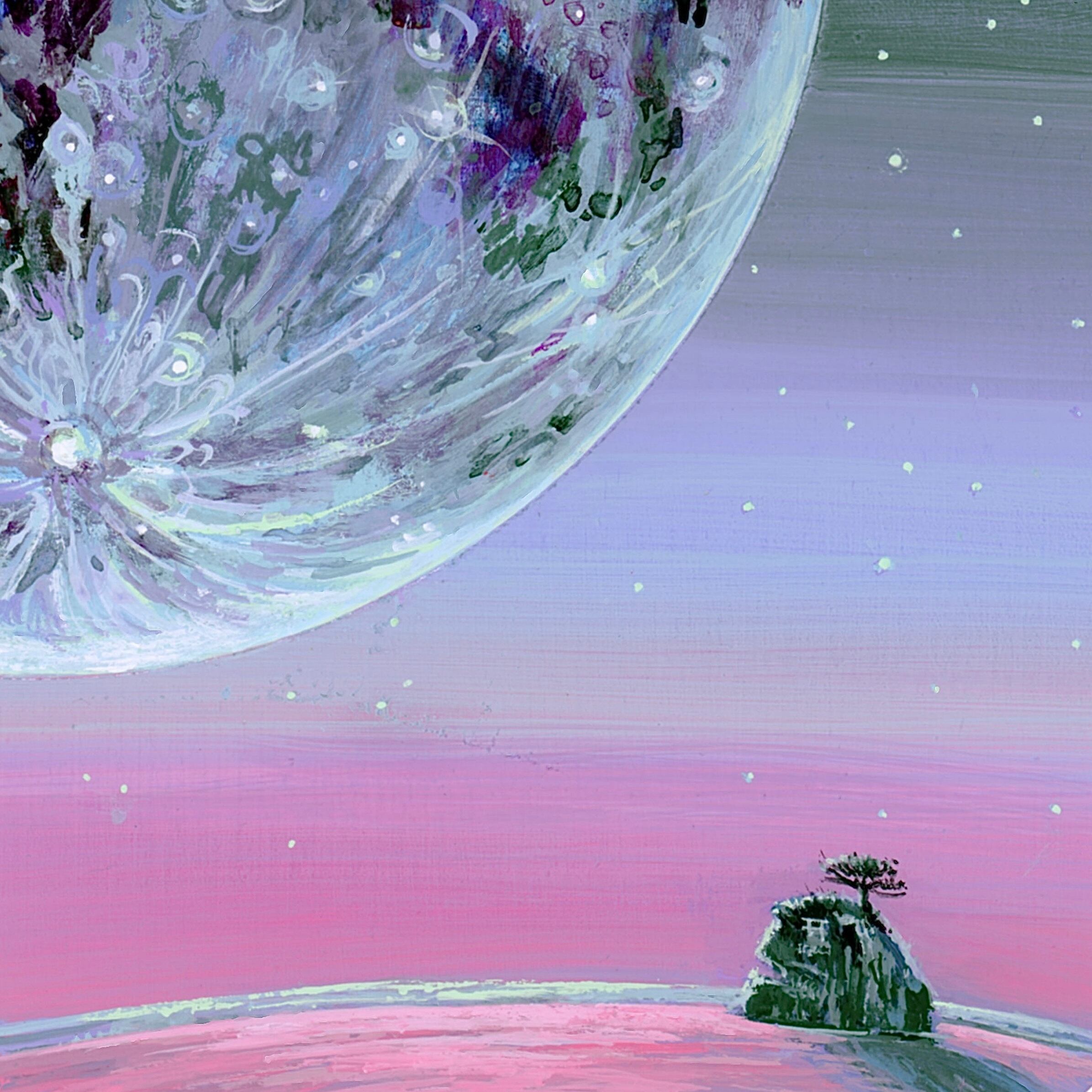 島根県出雲市、出雲大社に程近い「稲佐の浜の弁天島」を幻想的なタッチで描いたアクリル画です。